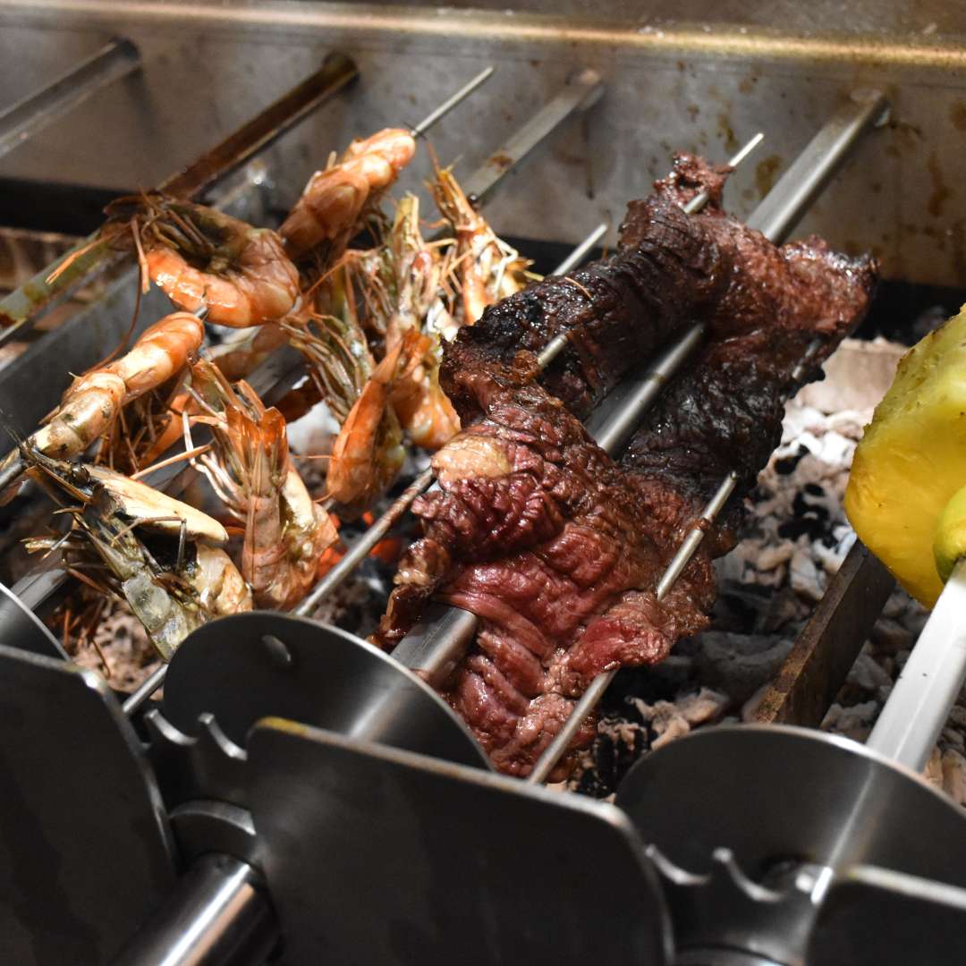 Churrasco Rodízio – Nekonečný zážitek pro milovníky masa. Připravte se na pravou jihoamerickou hostinu! Vychutnejte si tradiční brazilské Churrasco Rodízio, kde vám naši kuchaři budou přímo u stolu servírovat výběr šťavnatých mas připravovaných na otevřeném grilu. Ochutnejte picanhu, jehněčí kýtu, brazilský Flap steak, Alcatru s parmezánem a další speciality – vše v neomezeném stylu All You can eat, dokud neřeknete „Dost!“.