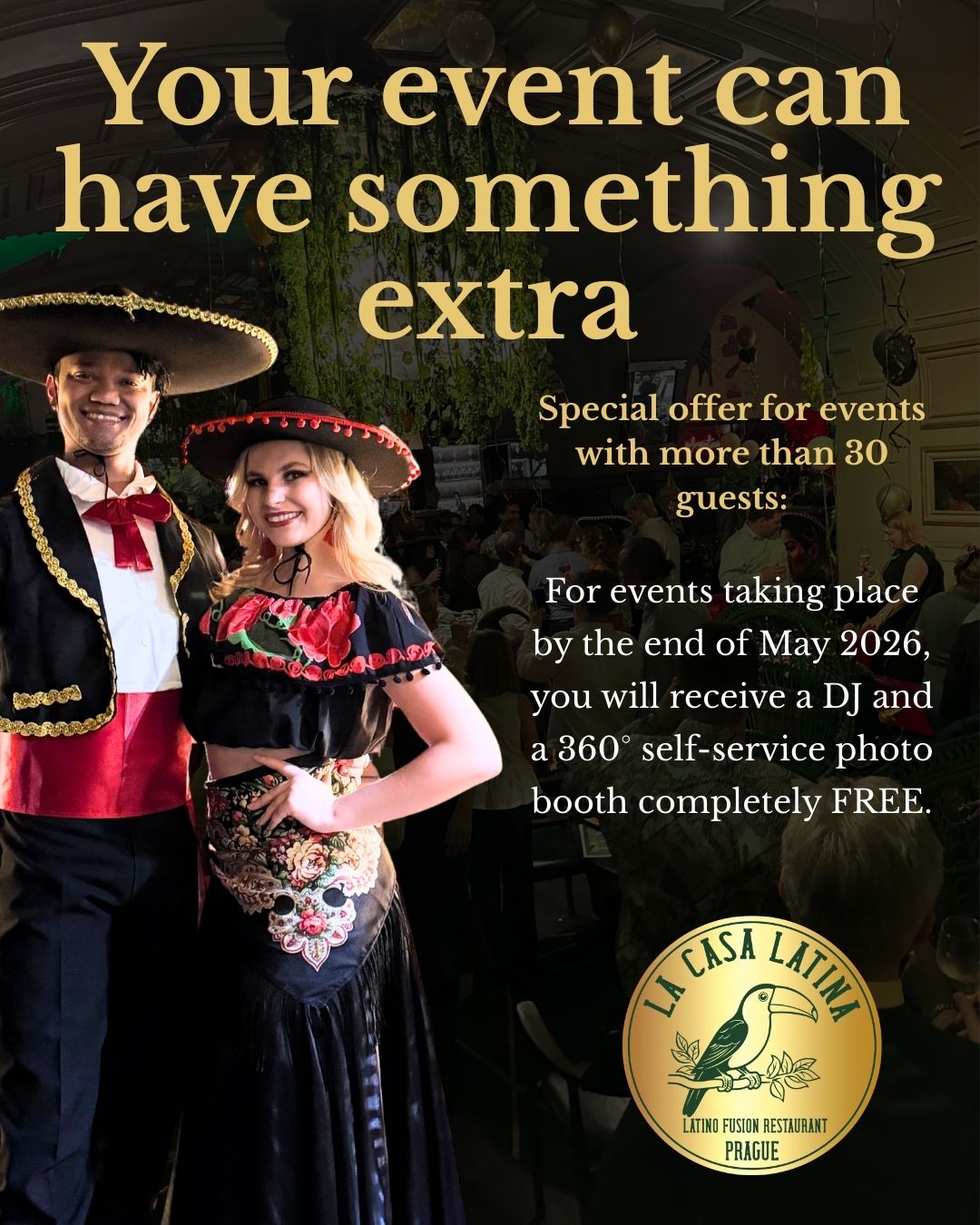Looking for a place where an ordinary event turns into an unforgettable experience? At La Casa Latina, we organize corporate events, celebrations, parties, and private gatherings with style, atmosphere, and impeccable service. Whether you are planning an intimate meeting or a large social event, we will take care of everything — from the first idea to the very last detail.